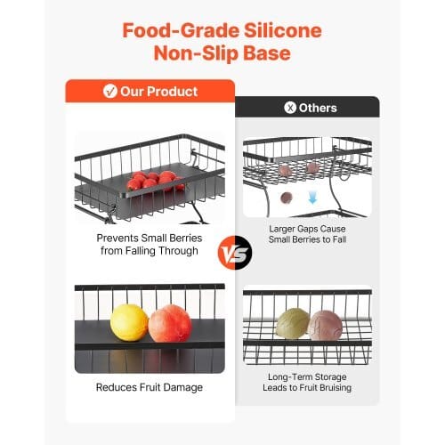 Organize your kitchen with the VEVOR 2-tier metal fruit stand. Features banana hangers & anti-slip base. Ships FAST FREE from the USA (2-6 days). Secure shopping & 12-month warranty.